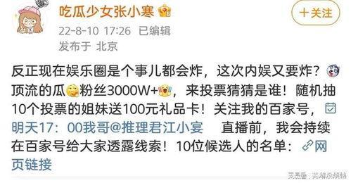 张小寒,一个看似普通的名字,却因为她的爆料而成为了娱乐圈的焦点。这次,她曝光的名单涉及众多明星,让人不禁对娱乐圈的潜规则产生了好奇。